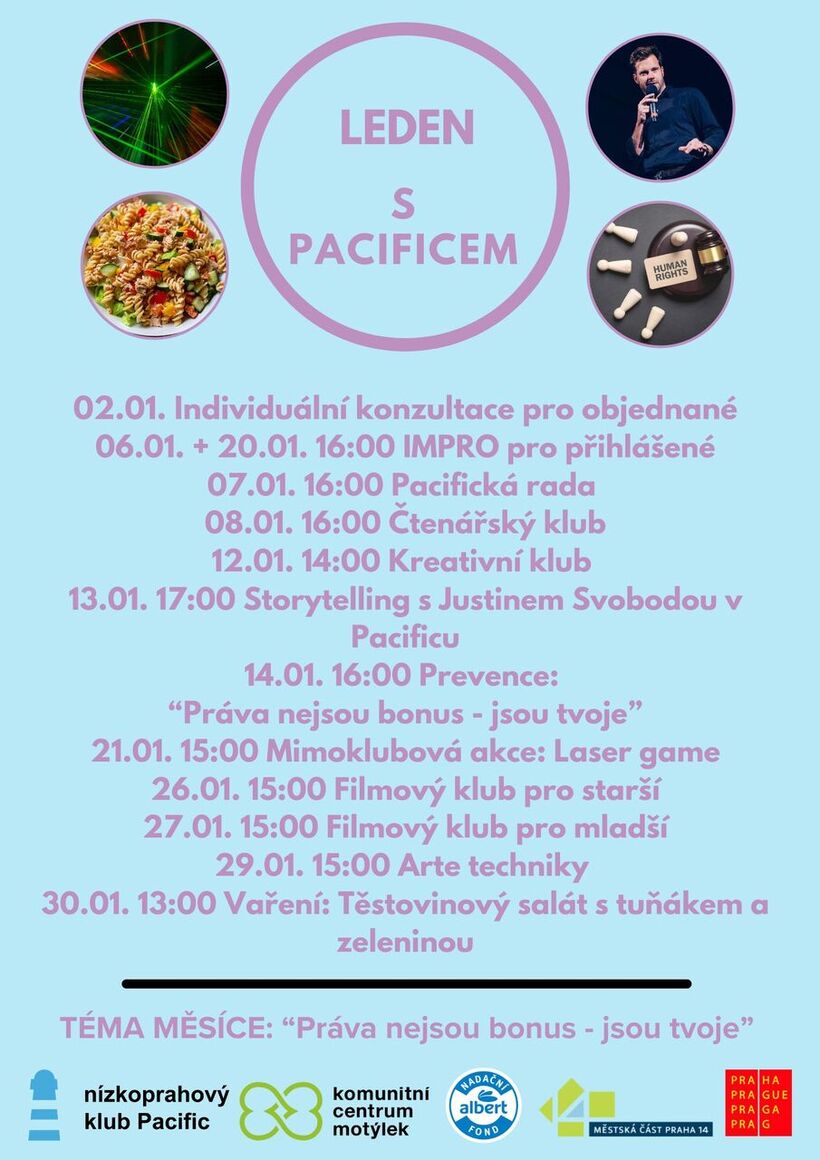 - Terénní sociální práce ve škole: Pracovníci/ce klubu Pacific pravidelně docházejí do ZŠ Bratří Venclíků a žákům a žákyním poskytují sociální poradenství.